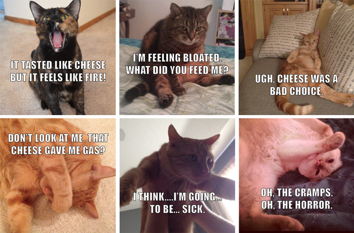 “Lactose intolerance causes gas, diarrhea, cramping, bloating and nausea,” explains Sockington. “When a kitty ingests lactose, the feline experiences the unpleasant symptoms of lactose intolerance. When we presented these cats with lactose-free cheese, we observed the symptoms disappeared, proving our theory."