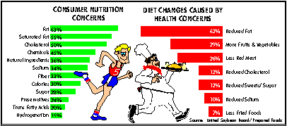 The number of foods comprising the low fat and fat free categories are expected to rise significantly. Going forward, we look for improvements in taste and texture. Particularly bright, is the future for nutritional products made from soy. Medical research has proven soy proteins reduce the risk of cancer and heart disease. Food companies are clearly quite excited about the prospects of this new and lucrative niche. These products should have broad appeal especially with a maturing American population.